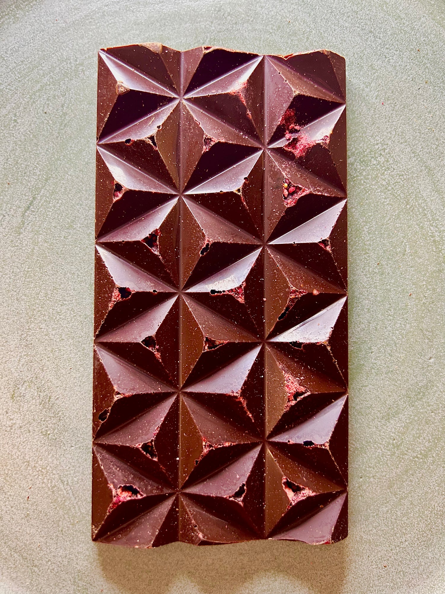 Equilibre subtil entre la rondeur du chocolat noir équatorien et la douceur acidulée de la framboise. Une expérience gourmande qui enchantera les amateurs de saveurs fruitées et de vrai chocolat artisanal.
